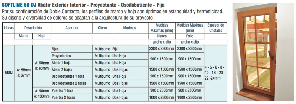 Disponible en Apertura Proyectante, Abatir Interior, Abatir Exterior, Oscilobatiente y Fija.